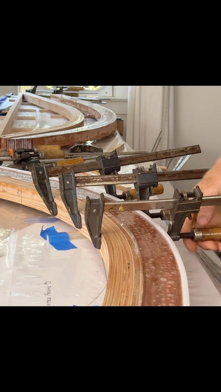 Sound on! Yesterday I disassembled the temporary framing so I could bevel the laminated frames to match the angle of the stringers. After that, I went on a somewhat nerve-racking lightening spree, thinning out various scantling as much as I dared. Next step is to reassemble everything permanently. Song is is razzmatazz by Jules...