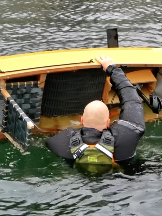 I still don’t understand if it’s really possible to self rescue a solo canoe? Here I’m doing some self rescue practice with the smaller of the two pedal drive prototypes. It’s not really much different than doing the same thing without the pedal drive, although it is a little more dicey because it’s hard...