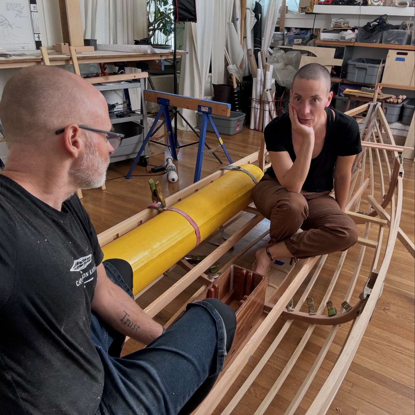 Sound on! Yesterday I disassembled the temporary framing so I could bevel the laminated frames to match the angle of the stringers. After that, I went on a somewhat nerve-racking lightening spree, thinning out various scantling as much as I dared. Next step is to reassemble everything permanently. Song is is razzmatazz by Jules...
