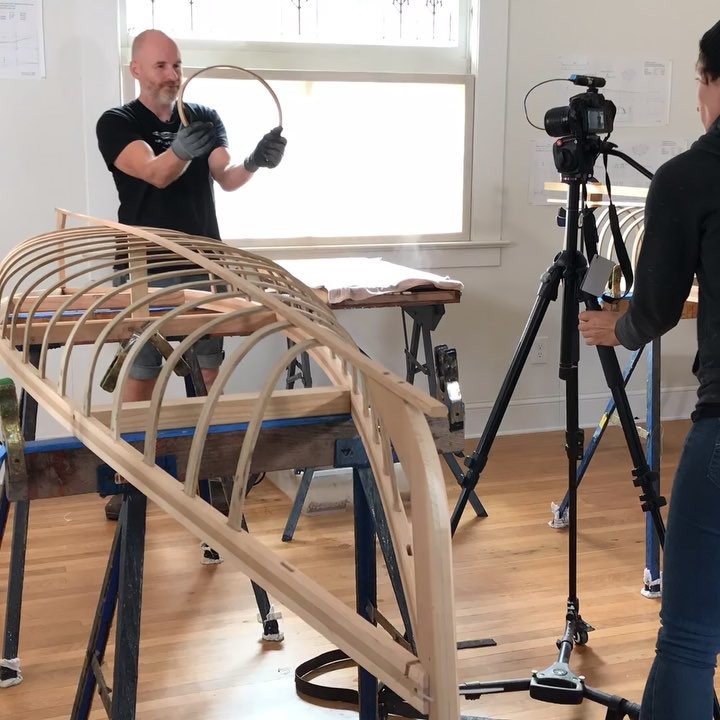 Steam bending ribs for a pack canoe while shooting the video for the new building course. I free bend all my boats this way - it takes about 20 minutes to rib a 12-foot canoe....