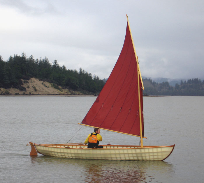 18′ long 54″ beam 21″ depth to sheer amidships I was looking for a double ended rowing / sailing beach cruiser that two people could use for extended camping in semi protected waters. Ben Fuller brought this design to my attention. The boat is similar to a Swampscott dory but carries a bit more waterline, a...