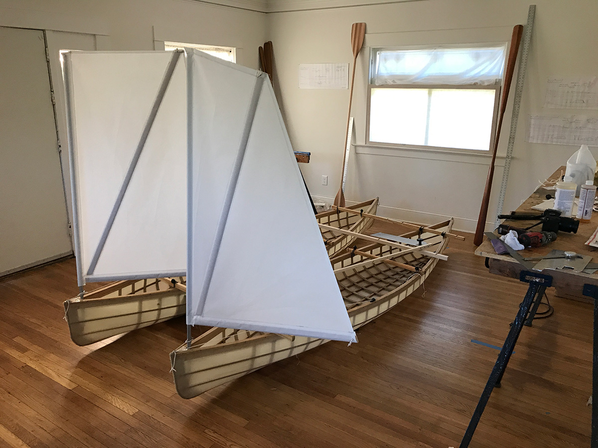 Experimenting with sail shapes and catamaran adjustments. We've got a hot week ahead in Portland, looking forward to putting the sails through their paces and testing out some canoe modifications....