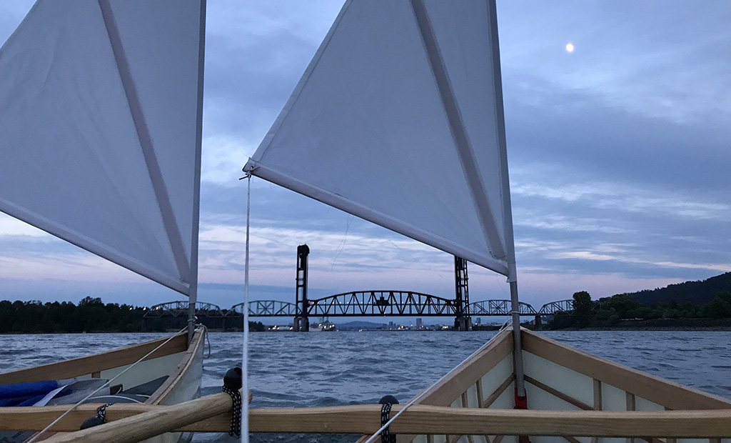 Evening sail test on the Willamette, with the canoes solo and catamaraned together. Lots more to test, full report coming soon!...