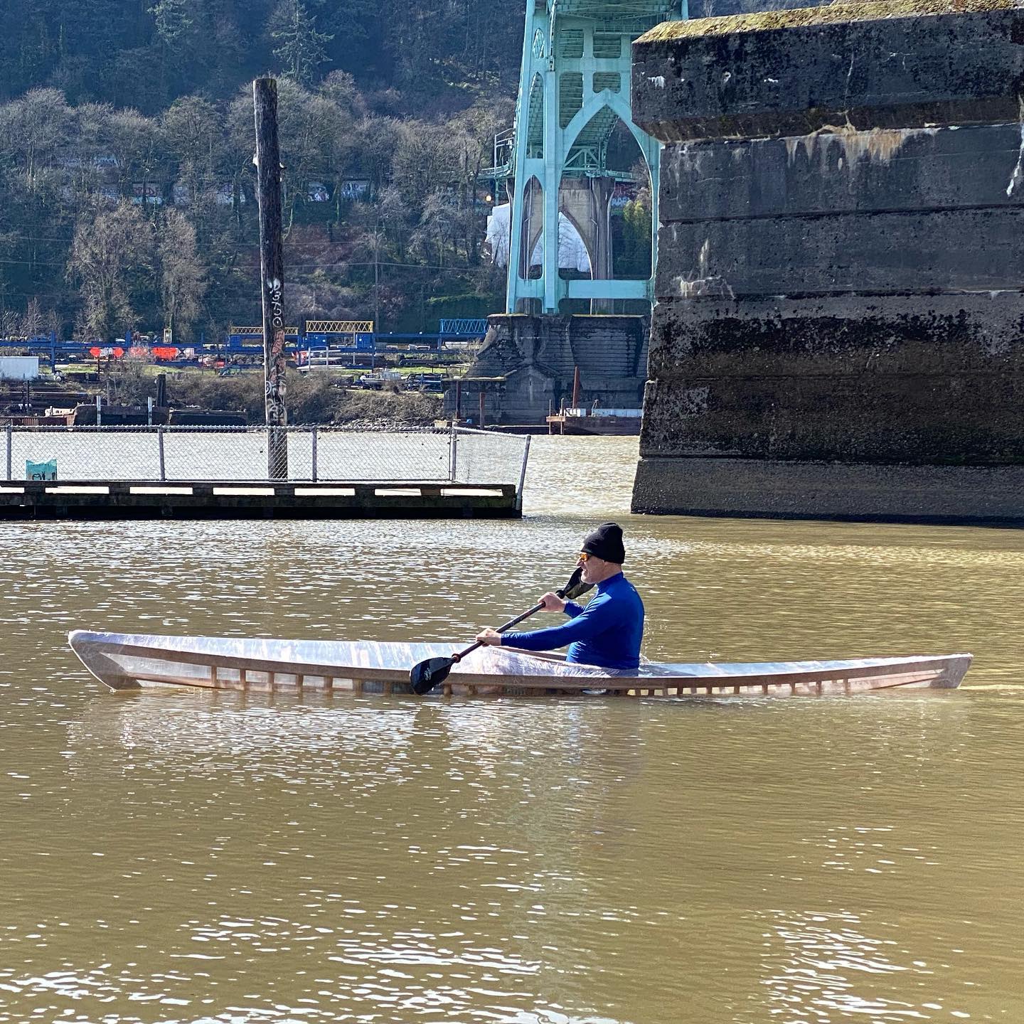 Just taking a quick spin in a customer’s boat before we send it out the door. This is our F1 kayak design, which is 14 feet long and 23 inches wide and weighs 32 pounds at this particular size (it comes in eight sizes). Due to the length, weight and narrow waterline, it has...