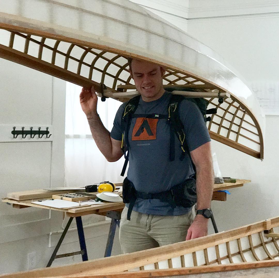 Canoe fitting. Tom is going to be carrying this canoe for 33 days, climbing over 125 miles to an altitude over 17,000 ft, so trying the canoe on for size seemed like a good idea. When I heard about what Tom and Kyle of The Weight We Carry are doing – carrying canoes to...
