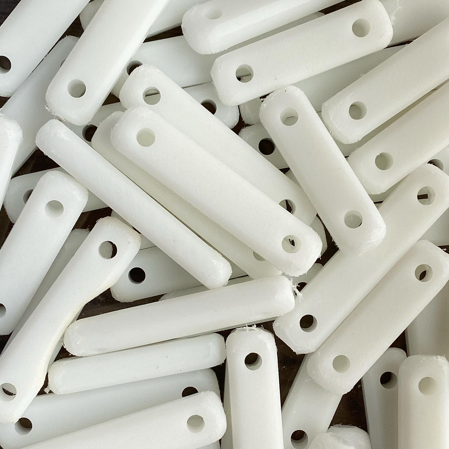 The toggles and rub strips that I use on my kayaks are made out of high density polyethylene. On Inuit kayaks these were sometimes made out of antler or bone, but most often made out of ivory from walrus kills. Speaking from experience, neither bone nor antler is very durable in this application, but...