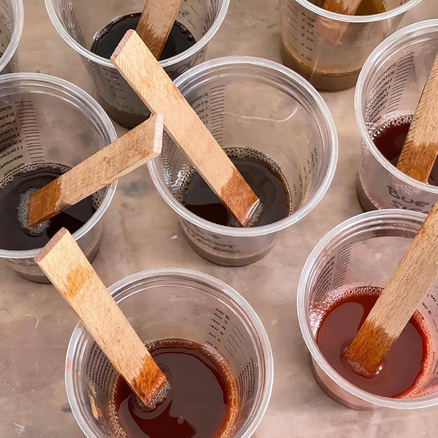 I’m trying to standardize rare earth pigment color recommendations so people have a better idea of what colors they can expect without just pouring in some pigment and hoping for the best on their brand new boat. For this first test I divided 32 ounces of the part B polyurethane into 2 ounce cups...