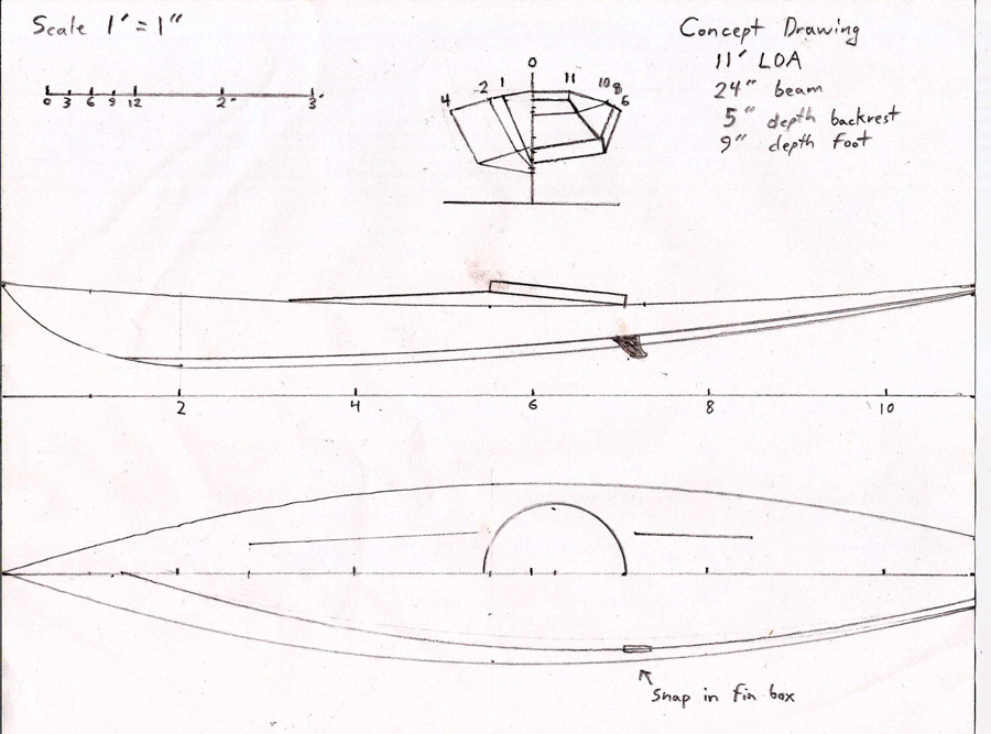 This kayak is intended to be a maneuverable, versatile, tight fitting high performance skin-on-frame day boat that weighs less than 20 lbs. I am hoping to cruise at a bit over 3 mph with a sprint speed a bit over 4. The short length should make it fun for river running up to class...