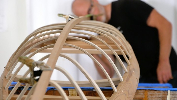 Ribbing a larger size version of the same boat that I ribbed a few days ago so I can splice together the best teaching from both videos. It’s always a little weird that bending the ribs only takes about 25 minutes, but editing the video takes about two days!...