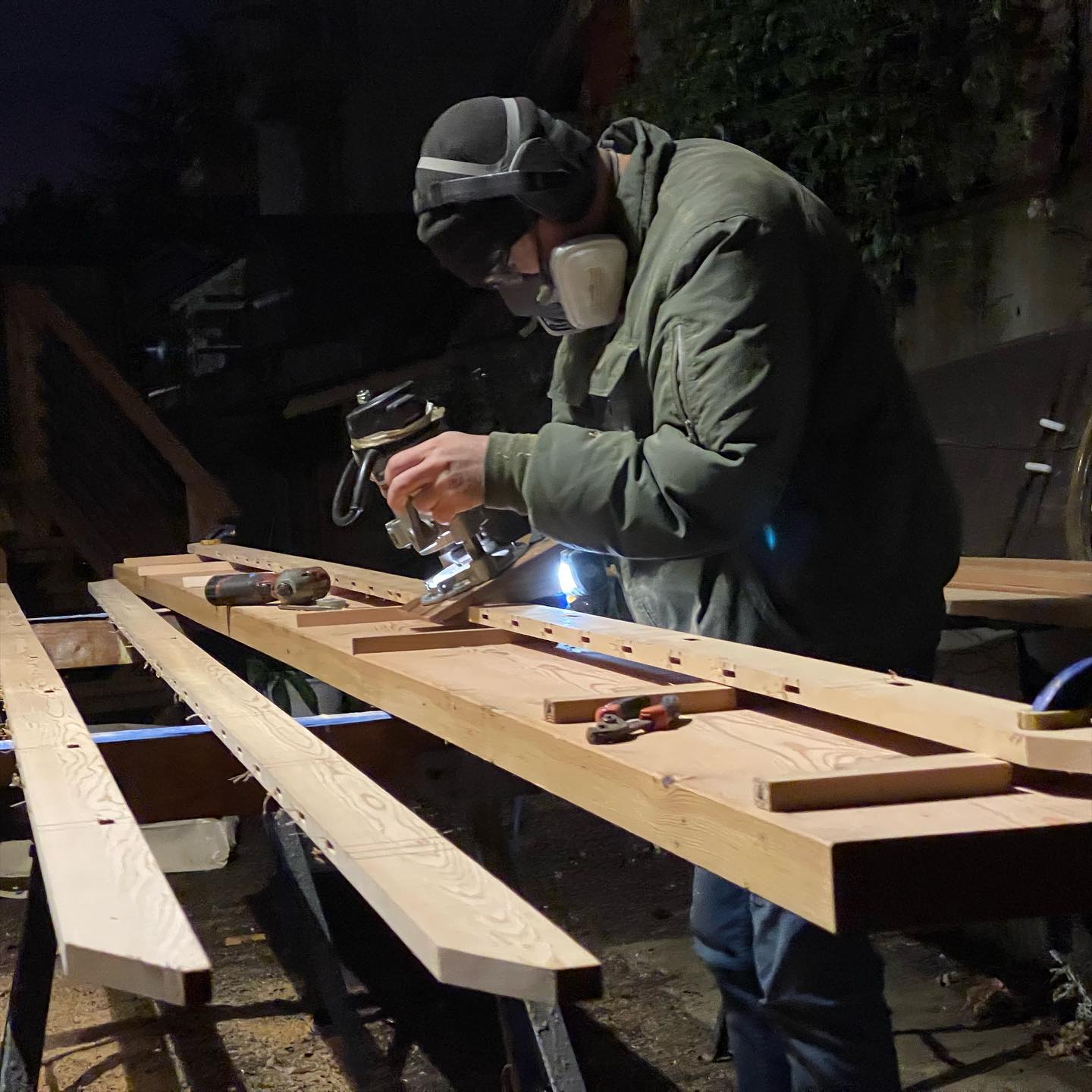 New project! I’ve always done my router work outside due to the huge amounts of microfine cedar dust it produces. Its a bit rough in the winter time! Here I’m working late to finish a double LPB kayak prep before some nasty weather arrives. I’m bouncing back-and-forth between a lot of projects right now...